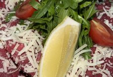 150/50/30 г • Вырезка говяжья, специи, сыр «Пармезан», масло оливковое, томат черри, руколла, гристини