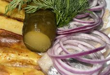 250 г • Филе сельди, картофель, лук репчатый, огурец соленый